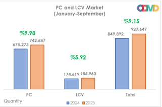 Il 2 ottobre scorso, l’Associazione dei Distributori Automobilistici (ODMD) ha reso noti i dati relativi ai primi nove mesi del 2025 del mercato automobilistico turco.