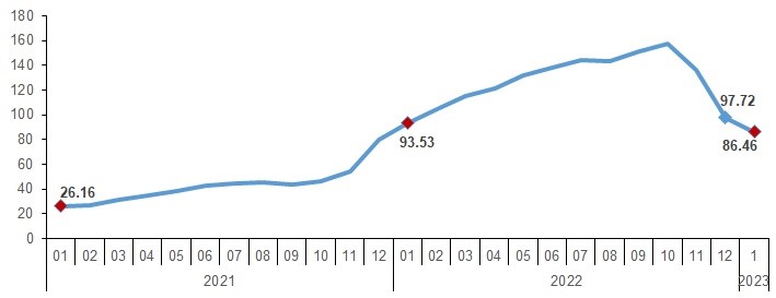 A gennaio 2023 si è in effetti registrato un calo del valore delle importazioni energetiche della Turchia in ragione della diminuzione dei costi del gas a gennaio ai livelli di inizio 2022.