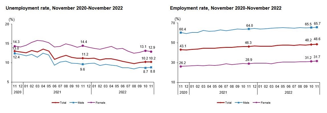 Lo scorso 10 gennaio l'Istituto statistico turco (TÜİK) ha diffuso i dati sulla disoccupazione per il mese di novembre 2022. TÜİK ha affermato che il tasso di disoccupazione è leggermente aumentato e si attesta al 10,2% (dato destagionalizzato) rispetto al mese di ottobre. Sempre secondo l’Istat turco, il numero di disoccupati è aumentato di sole 23 mila unità attestandosi a 3,576 milioni.