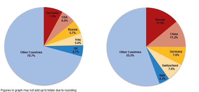 L'Iraq si consolida come terzo importatore con 13,8 miliardi di dollari precedendo il Regno Unito (13,1 miliardi) e l’Italia, 5° Paese cliente della Turchia con 12,4 miliardi di dollari di merci e servizi acquistati nel 2022.