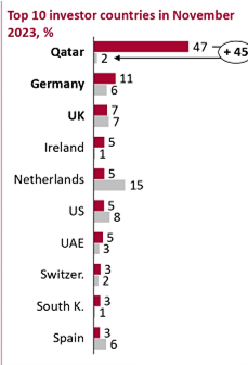 Per quanto riguarda il solo mese di novembre, al primo posto troviamo il Qatar (47%), seguito da Germania (11%) e Regno Unito (7%).