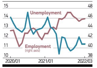 Il tasso di sotto-occupazione è invece diminuito di un punto percentuale su base mensile ed è salito al 21,8%.