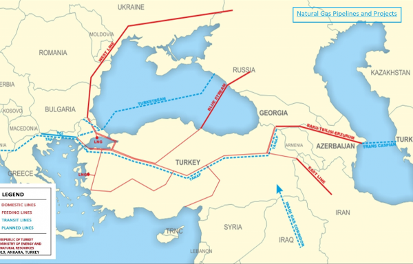 Nel 2018 le importazioni totali di gas della Turchia sono state di 50,3 miliardi di metri cubi, rispetto ai 55,25 miliardi di metri cubi del 2017 e le importazioni di GNL hanno raggiunto 11,3 miliardi di metri cubi. La strategia energetica turca ha l’obiettivo di rendere il Paese un hub regionale del gas, per rafforzare la sicurezza energetica, uso più razionale dell’energia, ridurre le fluttuazioni dei prezzi del gas indicizzati al petrolio, creare maggiore valore aggiunto e nuove opportunità di lavoro. Negli ultimi due decenni, la Turchia ha attratto significativi investimenti nel settore del gas per la vicinanza geografica all'Europa sud-orientale ed all'Europa centrale, l’elevata richiesta da parte degli importatori europei, le prospettive di crescita della domanda interna. Tra i principali progetti infrastrutturali nel settore vi sono il gasdotto TANAP, inaugurato nel 2017 e suscettibile di trasportare il gas azero verso l’Europa attraverso il collegamento con il TAP e il gasdotto “Turkish Stream”, dalla Russia, che avrà due linee: una destinata al mercato turco e una, in prospettiva, a quello europeo. Alcuni contratti di importazione di gas a lungo termine per 15,6 miliardi di metri cubi, corrispondenti a circa il 30% del consumo annuale di gas, scadranno nel 2021. Petroleum Pipeline Corporation (BOTAŞ), governativa, è ancora il principale detentore dei contratti di gas con l'80%, ma si prevede una riduzione della quota di licenze di importazione di BOTAŞ, aumentando la capacità di stoccaggio, negoziando i termini contrattuali con gli esportatori di pipeline, ed introducendo i regolamenti necessari per rafforzare la governance del mercato del gas, attraverso l'Autorità di regolamentazione del mercato (EMRA). Per quanto riguarda invece il mercato di produzione e commercio di gas naturale liquefatto (GNL), la Turchia ha al momento due unità di stoccaggio galleggianti a Smirne e Hatay e due terminali GNL in grado di rigassificare 117 milioni di metri cubi di gas al giorno.