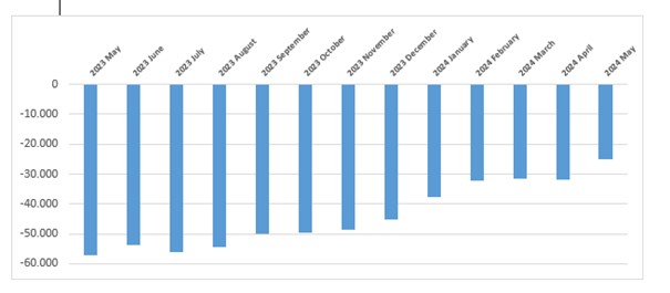 Secondo i dati ufficiali resi noti dalla Banca Centrale (BCRT) del 19 luglio, la Turchia ha registrato lo scorso maggio un deficit di conto corrente (CAD) pari a USD 1,2 mld, il più basso dall’ottobre del 2023.