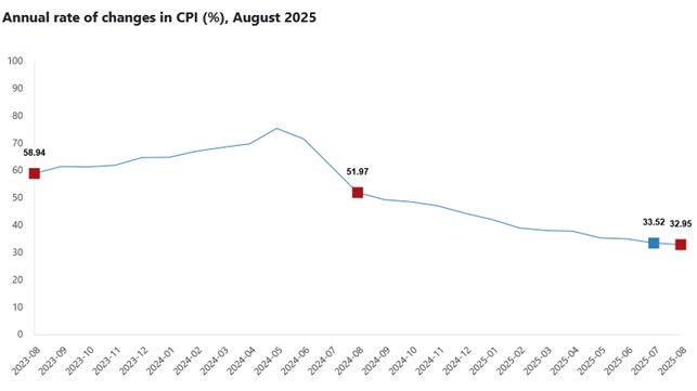 I dati pubblicati lo scorso 3 settembre da Turkstat, l’Istituto nazionale turco di statistica, indicano che ad agosto l’indice dei prezzi al consumo (CPI) su base mensile è cresciuto del 2,04%, in leggero calo rispetto al 2,06% registrato a luglio. L’inflazione su base annua si è attestata al 32,95%, in flessione rispetto al 33,52% di luglio.