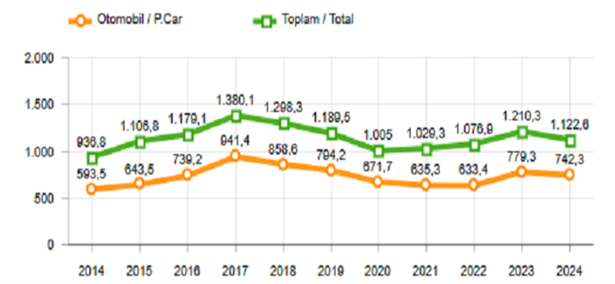 Secondo i dati pubblicati il 17 novembre dall'Automotive Manufacturers Association (OSD), la contrazione della produzione dell'industria automobilistica turca è proseguita anche nei primi 11 mesi del 2024. Nel dettaglio, su un totale di 1.122.567 unità totali prodotte, gli autoveicoli per passeggeri registrano una diminuzione del 4,8% rispetto all'anno precedente, raggiungendo le 742.303 unità prodotte. Nell’intervallo in osservazione, l’export di autovetture per passeggeri dalla Turchia ha raggiunto le 531.680 unità, in calo dell'1,6% rispetto ai primi undici mesi del 2023.