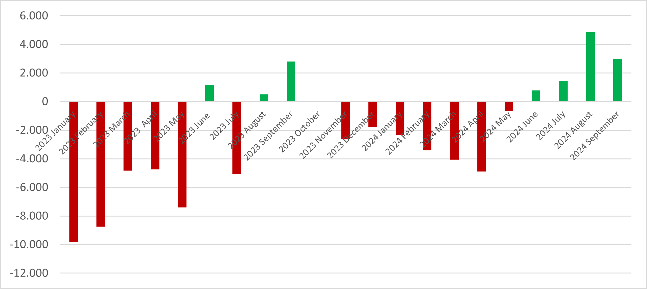 Gli afflussi della voce “servizi” hanno fatto registrare un avanzo netto di USD 7,4 mld, di cui USD 6 mld grazie ai viaggi per turismo. Nel mese di settembre 2024, gli scambi di merci e servizi hanno registrato un deficit di USD 3,1 mld rispetto a USD 3,7 mld di settembre 2024.