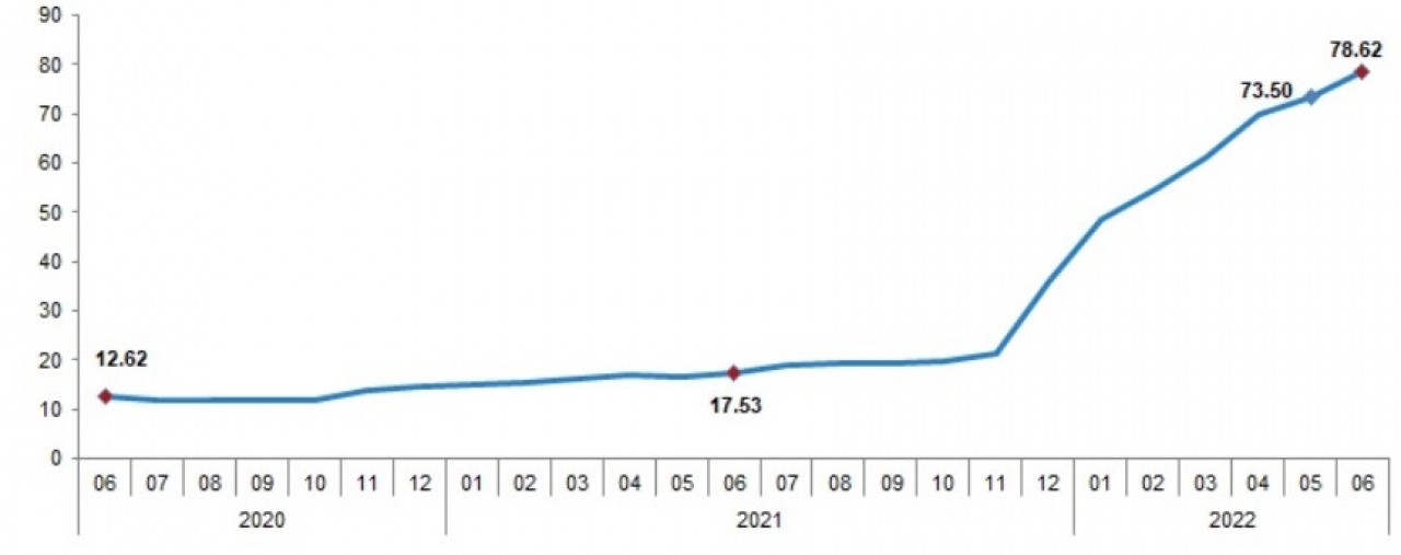Le autorità turche hanno annunciato una nuova serie di misure per contrastare l’elevato tasso di inflazione, che ha mostrato una ulteriore accelerazione su base annua. I dati appena diffusi da TurkStat per giugno 2022 indicano un tasso di inflazione che sale a 78,62% (il picco più altro dal 1998) con il CPI che in un solo mese è cresciuto del 4,95% rispetto a maggio 2022. Dal 1 luglio il salario minimo è stato aumentato, per la seconda volta nel 2022, del 30% (ora salito a oltre 330 dollari).
