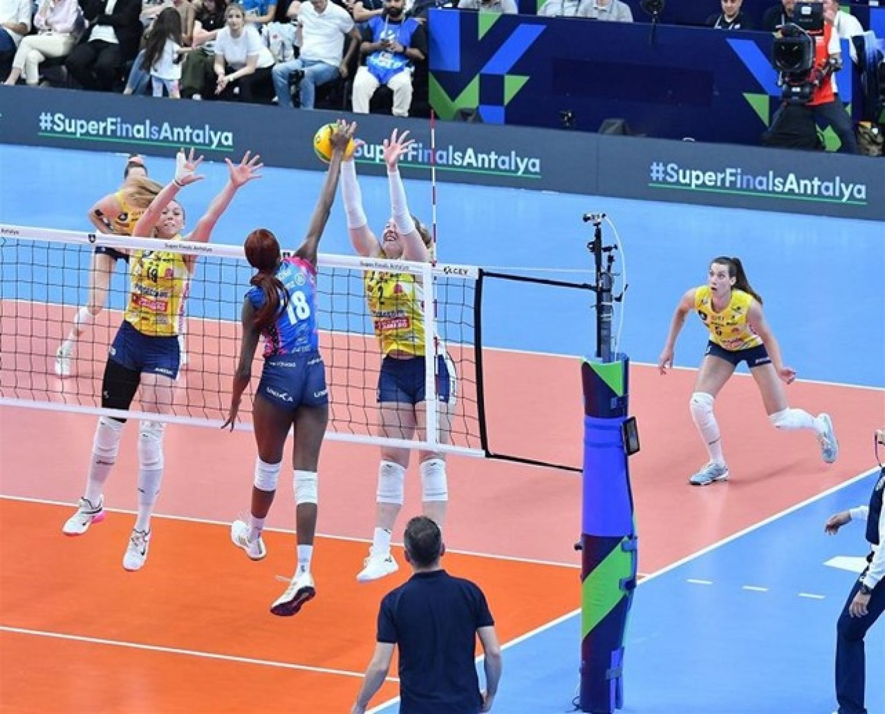 Il Ministro per lo Sport e per i Giovani, Andrea Abodi, presente in Turchia per assistere alle due finali, ha premiato le neo Campionesse d’Europa del Conegliano.