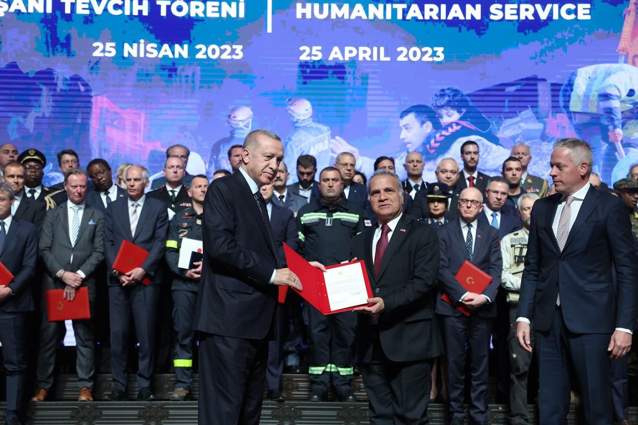 Il 25 aprile si è anche svolta una particolare cerimonia in onore delle squadre di soccorso turche e straniere presso il Palazzo Presidenziale. In tale occasione il Presidente Erdogan, ringraziando solennemente le squadre di ricerca e soccorso turche e internazionali, ha ricordato che i sismi del 6 febbraio scorso hanno causato più di 50.000 vittime, danneggiato migliaia di edifici e lasciato senza casa decine di migliaia di persone, sottolineando che più di 11 mila sono state le formazioni di soccorso provenienti da 90 Paesi. Il Presidente ha poi consegnato una speciale targa di ringraziamento all’Ambasciatore d’Italia in Turchia e ad un rappresentante del Dipartimento della Protezione Civile.